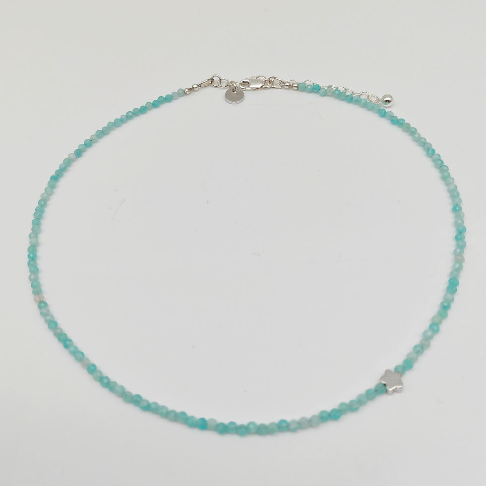 Edelsteinhalskette mit seitlichem Anhänger, Amazonit, silber